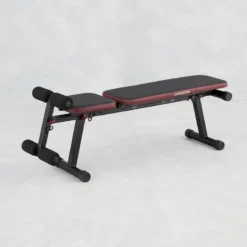 Compra en Decathlon Banco musculación pesas y abdominales plegable Corength Este banco de pesas no tiene montaje, solo tienes que abrir el producto para empezar a utilizarlo. Se puede desmontar la parte para el agarre de pies.