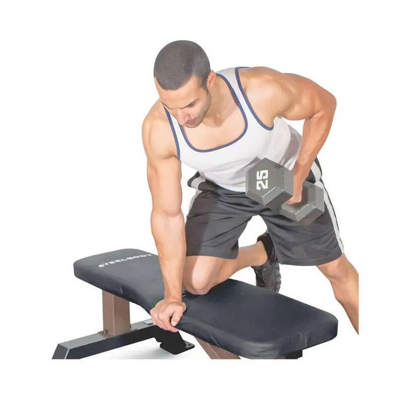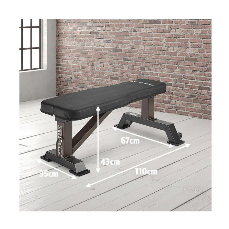 Compra en Decathlon Banco Plano SteelBody by Marcy STB-10101 La fortaleza de la estructura del banco plano permite sostener 362 Kg. Esta enorme capacidad es el resultado de un proceso de montaje riguroso.
