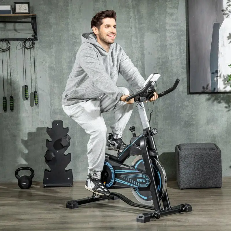 Compra en Decathlon Bicicleta estática resistencia ajustables SPORTNOW 114x59x117 cm negro Con un volante de inercia silencioso de 23 kg y un cuadro de acero, esta bicicleta estática SPORTNOW es ideal para entrenamientos intensos