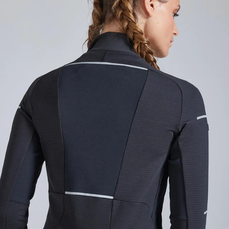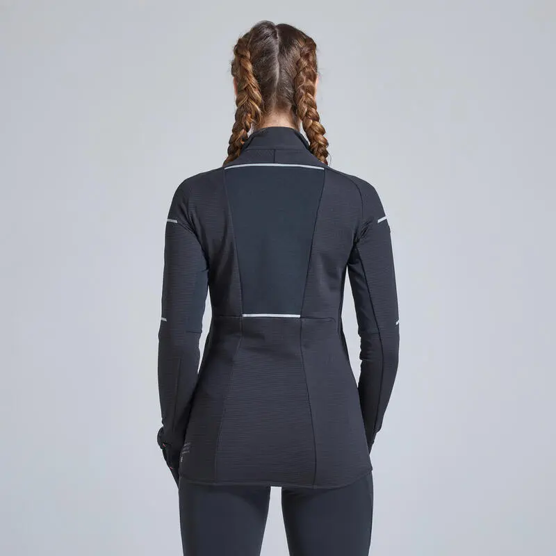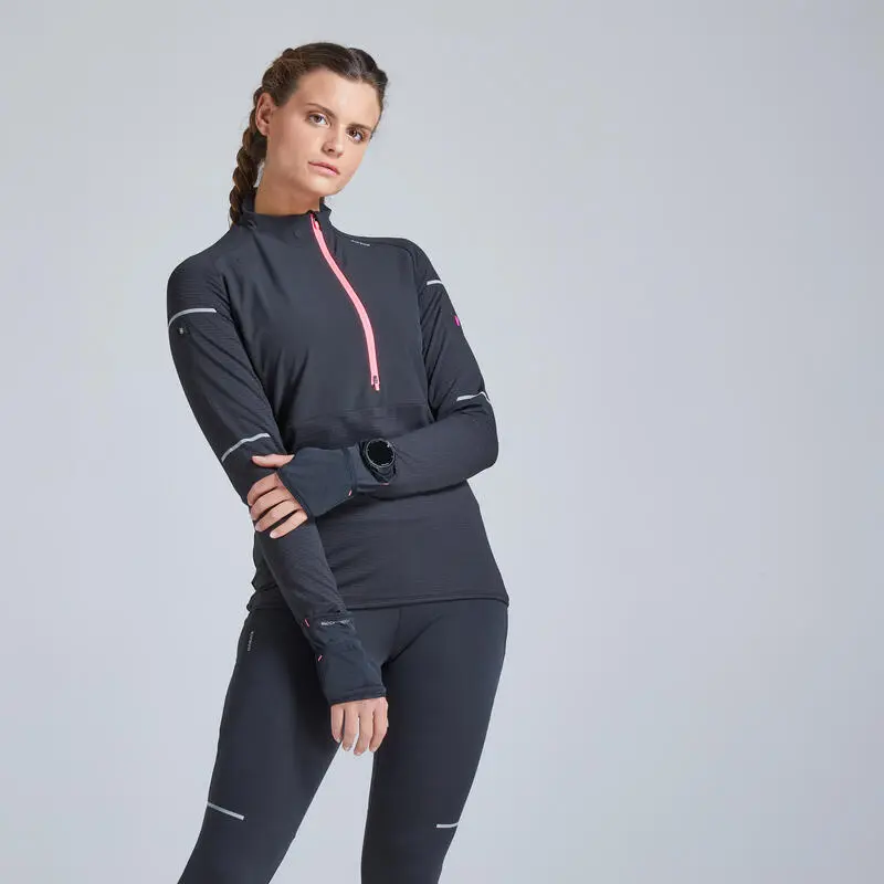 Camiseta Running Manga Larga Cremallera Mujer Kiprun Warm Negro Coral