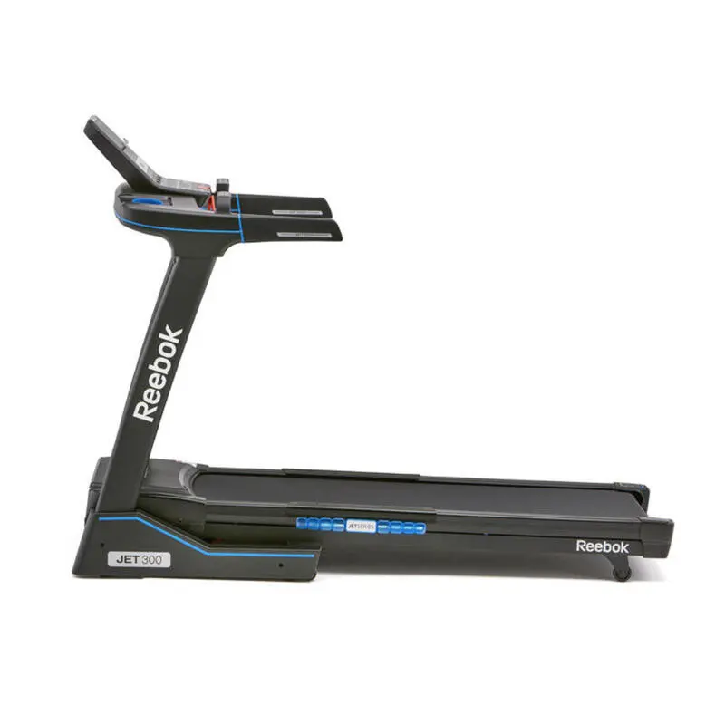 Compra en Decathlon Cinta de Correr Reebok Jet Series 300 Velocidad máxima de 20km/h. 15 niveles de inclinación electrónica. Motor continuo 2.5HP. Superficie de carrera de 150 x 51cm.