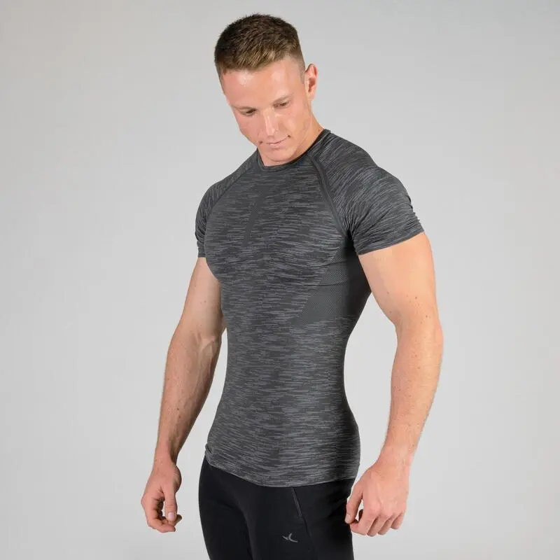 Domyos CAMISETA MANGA CORTA CROSS TRAINING MUSCULACIÓN HOMBRE COMPRESIÓN GRIS