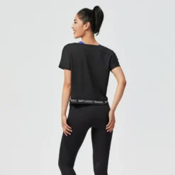 Camiseta Fitness Manga Corta Crop Top Mujer Domyos 520 Negro