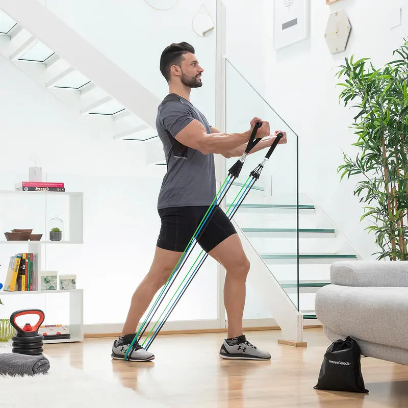 Compra en Decathlon Bandas elásticas de musculación pack de 3 gomas elásticas fitness Set de Bandas de Resistencia con Accesorios y Guía de Ejercicios Tribainer InnovaGoods (pack de 3)