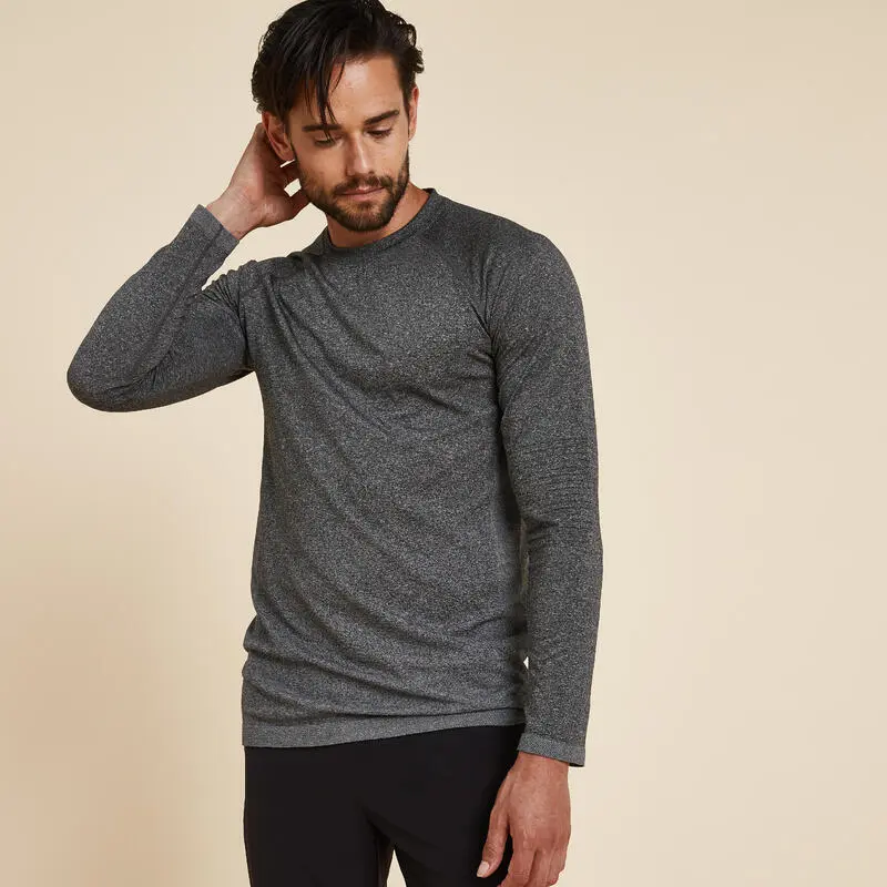 Compra en Decathlon Camiseta Hombre Sin Costuras Manga Larga Nuestros yoguis han diseñado este producto ligero, técnico y ceñido para acompañar tus posturas invertidas con absoluta tranquilidad.