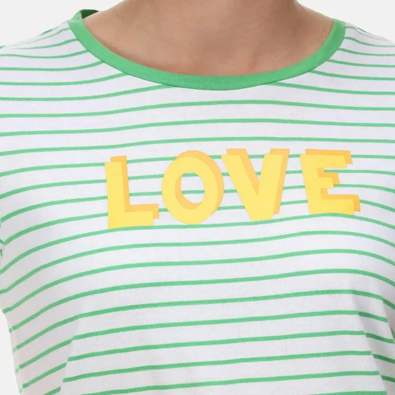 Compra en Decathlon Camiseta Odalis de Rayas para Mujer Verde Vibrante Alta calidad De las mujeres pilates producto, Algodén material, 100% Algodón.