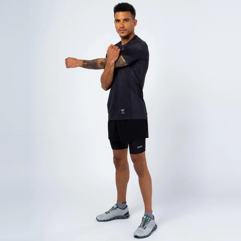 Compra en Decathlon Camiseta de manga corta Running Ligera de Poliéster Reciclado Hombre TRR Negra Camiseta ultra ligera y suave. Cuenta con Micro agujeros que expulsa el sudor con extrema rapidez y detalles reflectantes. 84% de esta camiseta es de material reciclados, El resto es Lycra.