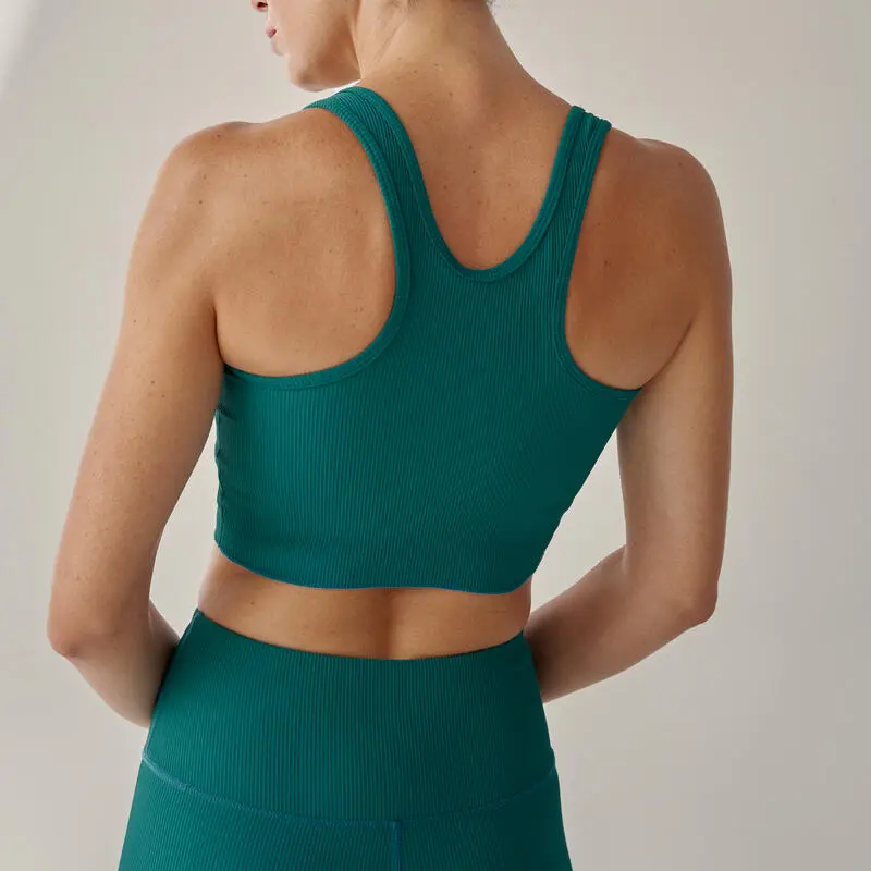 Compra en Decathlon Top deportivo Jari Sujecion media de mujer Black Limba Top deportivo crop top de canalé. Sujetador incorporado y relleno ligero extraíble. Espalda nadadora. Detalle de volante. Mínimo de costuras. Para entrenamientos de bajo y medio impacto.