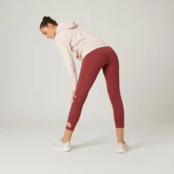 Domyos Leggings Mallas Fitness 7/8 Algodón Extensible Mujer Burdeos