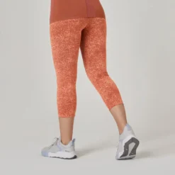 Domyos Leggings Mallas Fitness 7/8 Ceñidos Algodón Mujer Naranja